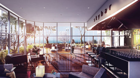 Como se encuentra dentro de un lote medianero, esta torre de veinte pisos se distancia de sus vecinos para que tenga cuatro fachadas y así se ilumine naturalmente una mayor superficie en los interiores. Los bordes redondeados y la variación de la planta por piso crean una volumetría dinámica y muy atractiva.