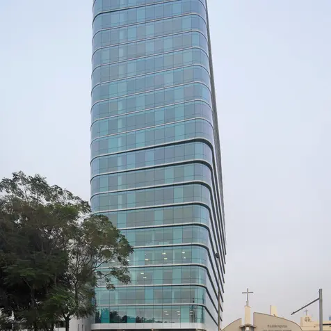 Como se encuentra dentro de un lote medianero, esta torre de veinte pisos se distancia de sus vecinos para que tenga cuatro fachadas y así se ilumine naturalmente una mayor superficie en los interiores. Los bordes redondeados y la variación de la planta por piso crean una volumetría dinámica y muy atractiva.